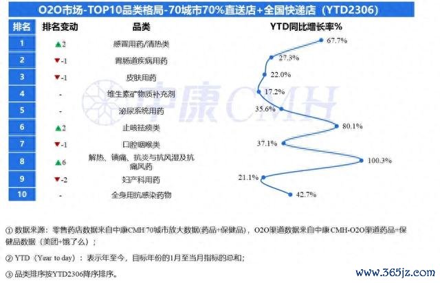 O2O市场前十集团名单中,强生、Haleon、阿斯利康、济川药业对比去年同期规模涨势较快,其中济川药业以96%高增速跃进前十。